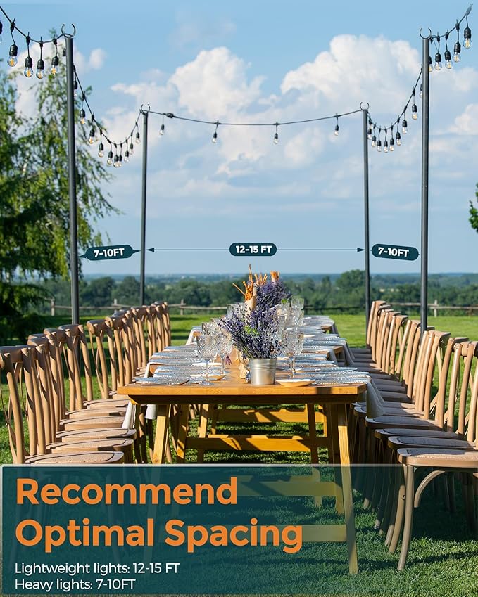 - 【SUITABLE POLE DISTANCE】: The outdoor pole distance for lightweight lights is 12 feet to 15 feet, and the distance for heavier lights is 7 feet to 10 feet. This distance ensures that the pole is straight to provide the great display.
