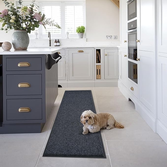 - 4. Non slip rubber backing design: Made of high quality polyester and rubber and prevents moisture from seeping through and keeps the mat in place.