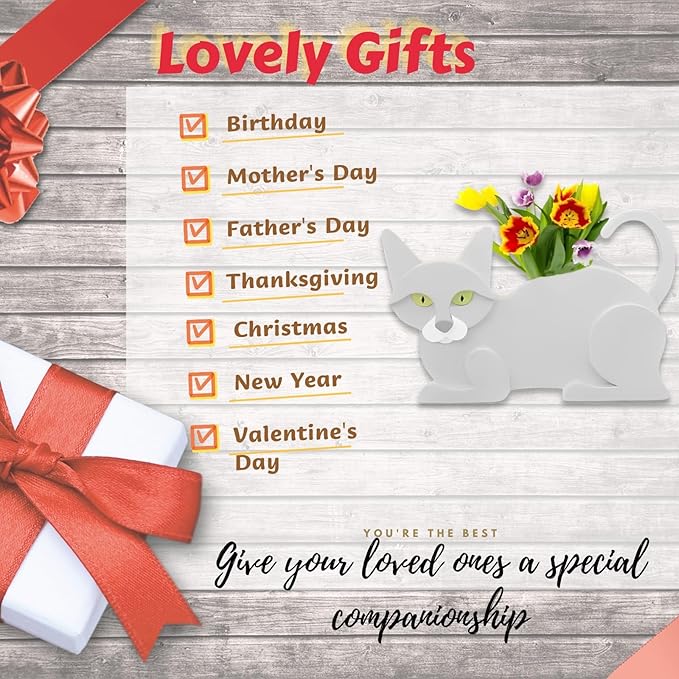 White Cat Planter Plant Pots,Cute Garden Cat Flower Planter,Cat Planters Birthday Gifts for Women,Office,Indoor/Outdoor Decor(12.5 * 5.6 * 7.8in)