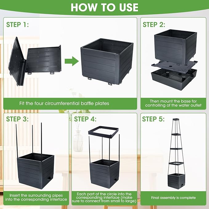 - STURDY TRELLIS SUPPORT: this raised bed planter is constructed of a 5 Gal capacity planter box with a 48" trellis on top which offers great support and ample space to grow a variety of your favorite vine flowers or climbing vegetables ,tomato planter requires no screws and special tools, also no need to read complicated assembly instructions, very easy to assemble and set up. Meanwhile tomato planter can be interconnected and extended to meet your various DIY requirements
