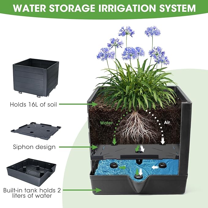 - WITH A SELF-WATERING SYSTEM:Display your favorite flowers or plants with this convenient self-watering tomato planter! Tomato planter with trellis has a reservoir at the bottom, which keeps the soil continuously moist in the hot summer, without daily watering and less maintenance. Plants grow according to their own needs and get the nutrients they need from the reservoir. The self-watering function is always the savior of thirsty tomatoes and other plants