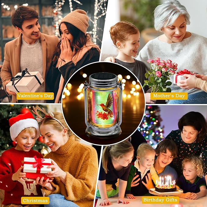 Hummingbird Solar Lanterns Outdoor Waterproof Hanging,2 Pack Outdoor Solar Lanterns,Gifts for Mom Women Men Decorative LED Lanterns for Yard, Patio, Lawn, Tabletop, Pathway, Landscape, Garden