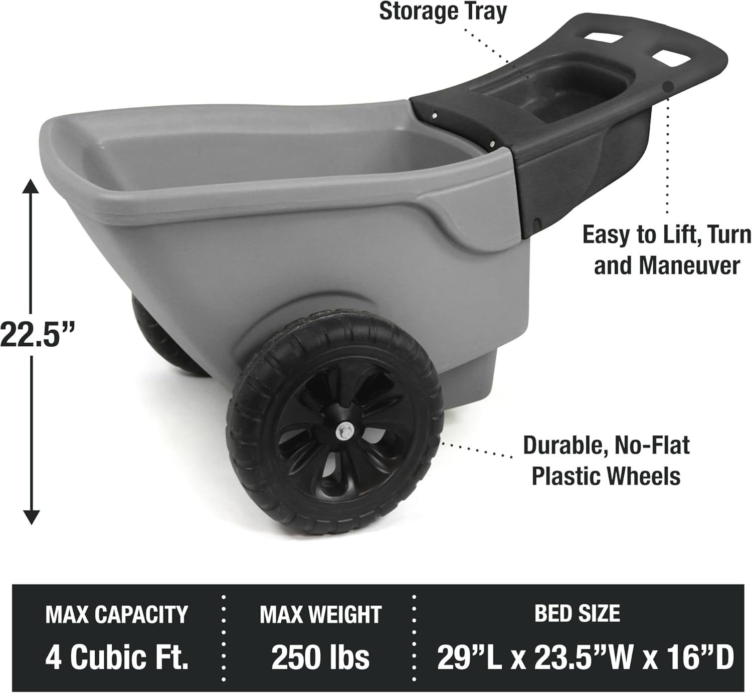 - EASY ROLLING GARDEN CART: Two large wheels are designed for easy rolling, turning, pivoting, and maneuvering. Smooth handle is easy to grip for stable loading, moving, and unloading.
