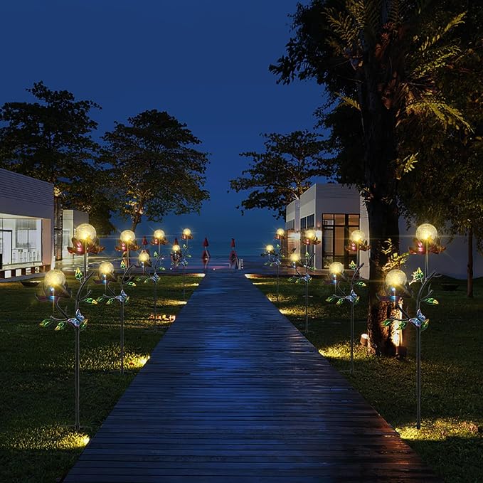 - Flower Decor and Wind Spinner: Inspired by the graceful flowers, these solar yard lights feature petals that can rotate 360ยฐ with the wind. They add a playful and enchanting touch to your garden.