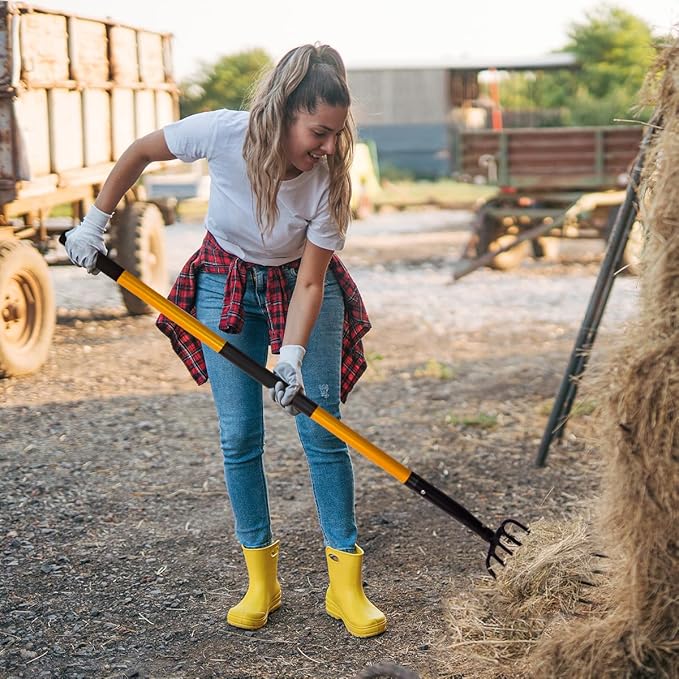 - Special Non-Slip Handle: The pitchfork come with thickened fiberglass handle that are lightweight and strong enough to resist breaking, and 2 non-slip grips on the handle to provide a comfortable and firm grip and leverage.