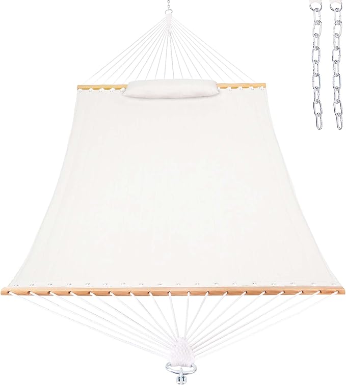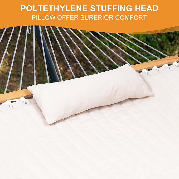 Lazy Daze 12 FT Sunbrella Quilted Double Hammock with Hardwood Spreader Bar, 450 lbs Capacity, Cream