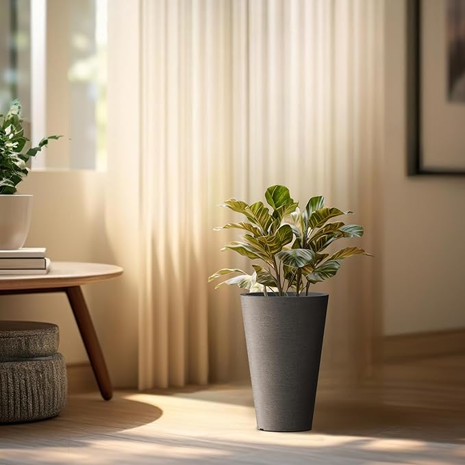 - Premium Tall Planters - Meticulously crafted with durable construction and superior workmanship, our planters are made from high-quality plastic, ensuring longevity, weather-resistance, and color retention. Whether utilized indoors or outdoors, these tall round planters are suitable for all seasons.
