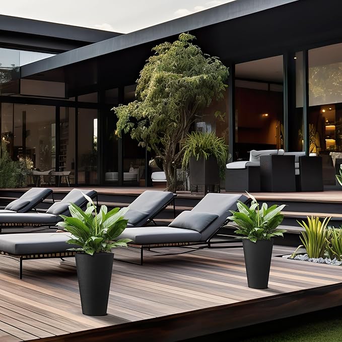 - Minimalist Chic - Elevate your space with these tall and wide planters, embodying sleek lines and a contemporary black finishโa defining trend in modern landscape design. The textured surface introduces an artistic touch to your garden, patio, office, living room, or front door area.