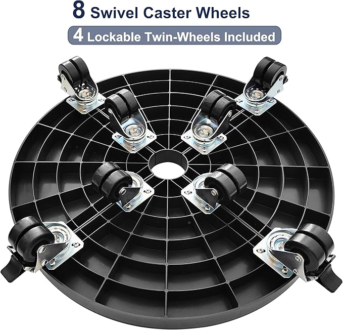 - 【Wide Application】This large plant cart can be widely used indoor and outdoor for moving big garden pots, patio umbrella, whiskey barrels , trash cans, Christmas tree, large balcony vases. 8 heavy duty swivel caster wheels roll on everything, make it easy to moving heavy object around your deck and patio. With this plant stand, you can also easiy do daily cleaning, saving your back.