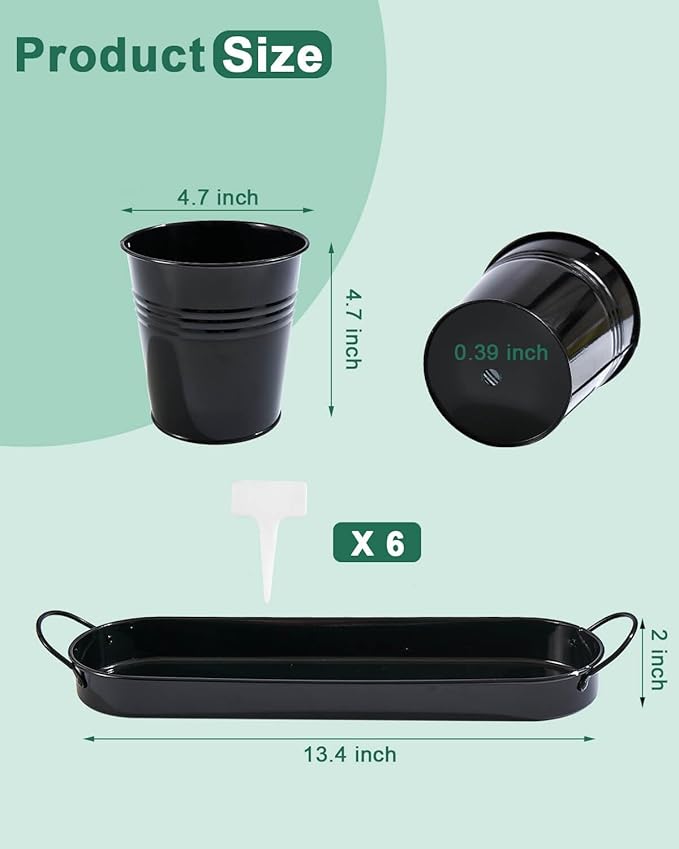 - 【Indoor Herb Garden Kit】The set includes black 3 galvanized herb planters (4.7 inches each) and a 13.4-inch tray, plus 6 plant labels for easy identification. Perfect for starting your own indoor herb garden on the windowsill or kitchen counter.