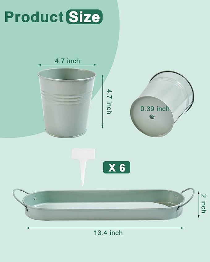 - 【Indoor Herb Garden Kit】The set includes 3 green galvanized herb planters (4.7 inches each) and a 13.4-inch tray, plus 6 plant labels for easy identification. Perfect for starting your own indoor herb garden on the windowsill or kitchen counter.