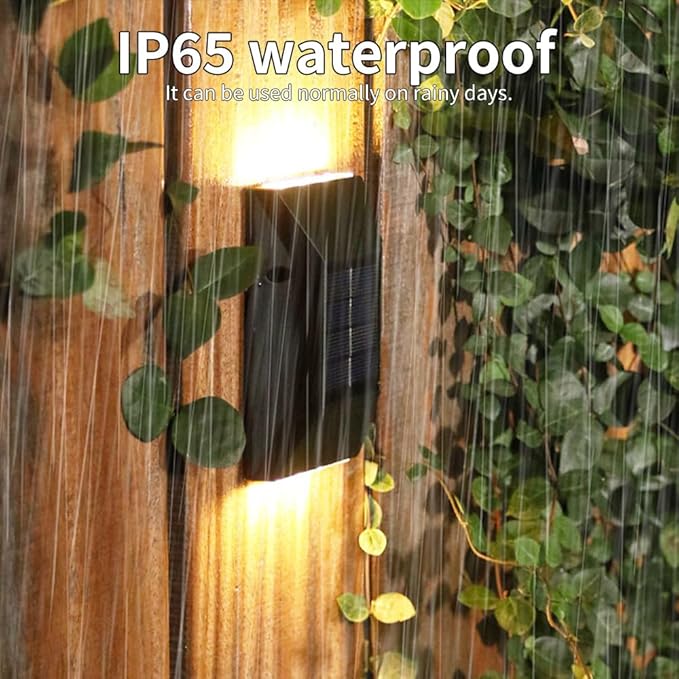 2 Pack Solar Wall Lamps, Solar Fence Lights, Deck Light, LED Solar Wall Lights for Home Garden Porch, Up and Down Lighting Lamp (White Light)