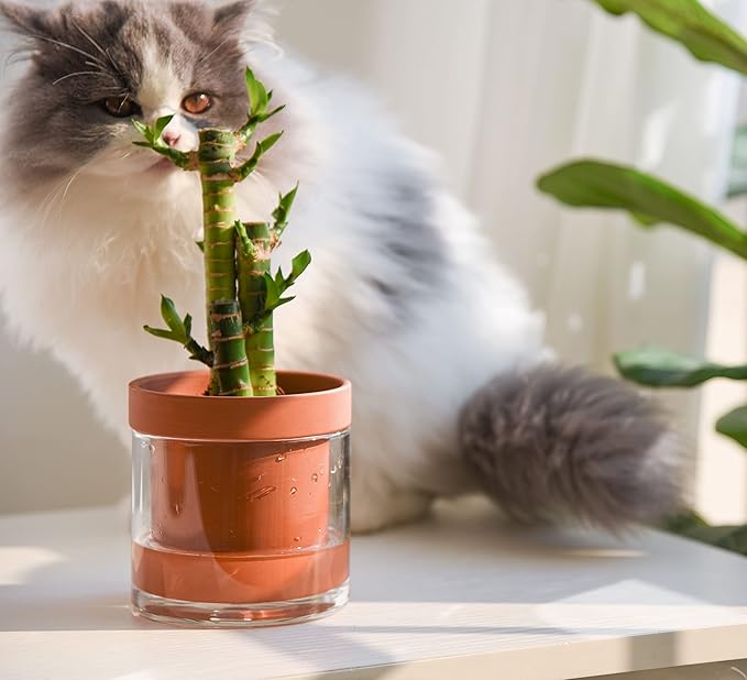 - Self-watering System: The terracotta pot is unglazed, just fill the glass container with water to ensure plants will absorb only what they need through the terracotta pot walls.