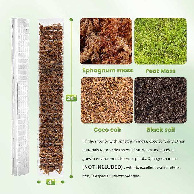 - [Create an Ideal Growth Environment] We strongly suggest using sphagnum moss (NOT INCLUDED) with our plant sticks for best effect because it can provide water and micronutrients for creeping plants for a long time. Besides, our product will not end up rotting even if it stuck inside the soil for too long.