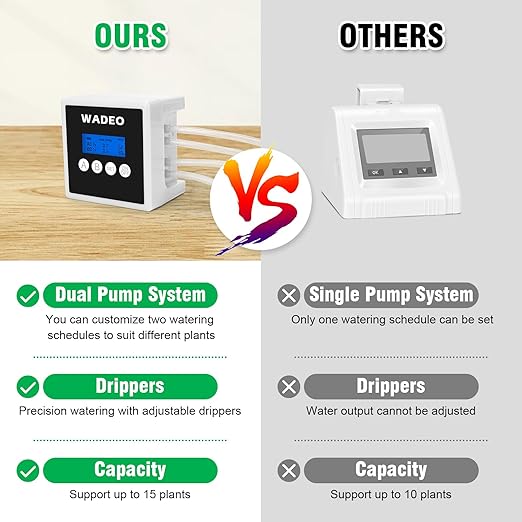 WADEO Automatic Watering System for Potted Plants, Dual Pump Plant Watering System, 15 Potted Automatic Plant Waterer for Indoor, Automatic Drip Irrigation Kit with Digital Programmable Water Timer