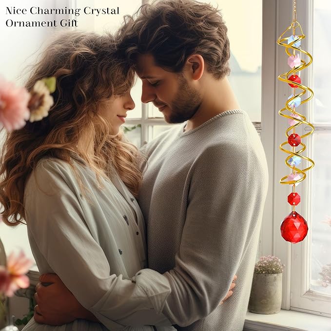 - Vibrant Red Crystal Glass Ball: Adorned with a 1.18 inch red crystal glass ball, this gazing ball spiral tail suncatcher adds a pop of enchantment to any garden or patio.You can also add a motor(not include) to let the spiral to spin ,while spiral tail rotating (it canโt spin by itself)