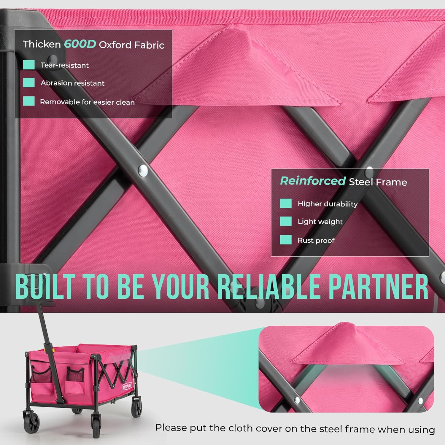 - 【High-Quality Material】This utility wagon is crafted with 600D thickened Oxford cloth, ensuring both waterproof and tear-resistant properties. Its excellent wear resistance extends the service life, while the removable and washable bag adds convenience, eliminating worries about dirt.