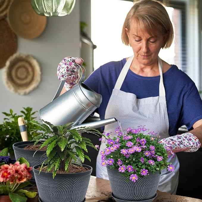 - 【Modern Circle Pattern】The flower pot is designed with a 3D imitation ceramic plastic textured round rope pattern add a lively and modern feeling, brings out a modern stylish visual representation for any home/office decor without any sense of violation. Enhance your space with these planters and watch your plants flourish.