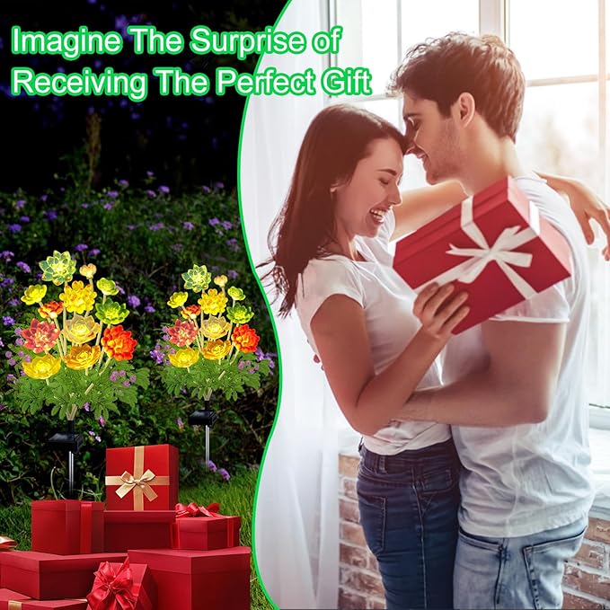 • Adapted for Any Occasion and Perfect Garden gift-Best recommend you buy more sets to make more gorgeous scene. Perfect outdoor decoration for yards,lawns,and sidewalks,and any occasions such as Christmas,weddings,parties,etc.It's the perfect gift for succulent plants lovers.Solar outdoor succulent lights is also an ideal gift for Mother's Day,Valentine's Day,anniversaries,and birthdays