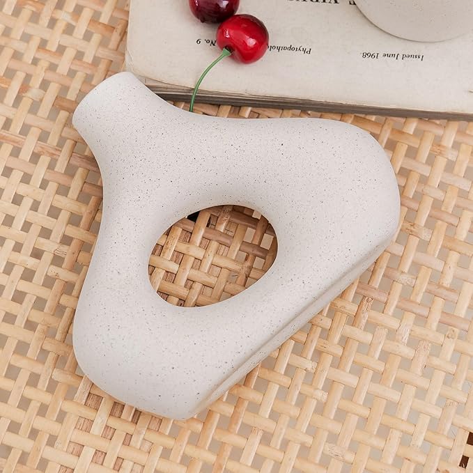 CEMABT Beige Ceramic Vase Set of 2 for Modern Minimalist Bohemian Decor,Round Matte Donut Vases for Pampas Grass-Perfect for Living Room, Dining Table, Office Bedroom Shelf Decor Entryway, Console…