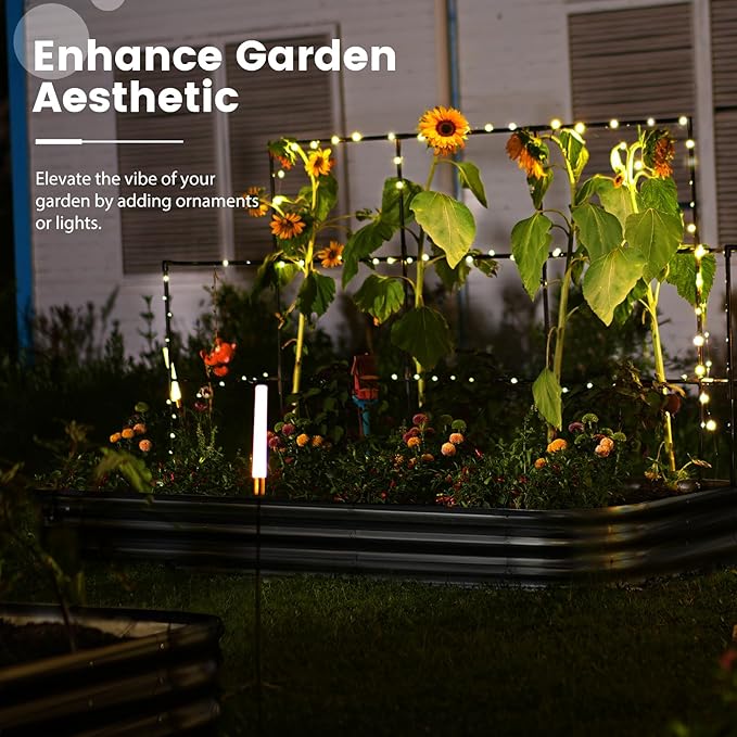 - 【Multifunctional Trellis】More than just a simple raised planter box, the trellis adds a realm of possibilities to your garden. You can hang small flower pots, decorations, and ambient lights on the trellis, or drape it with mesh or covers. As lush plants climb over the trellis, they also provide refreshing shade for your garden.