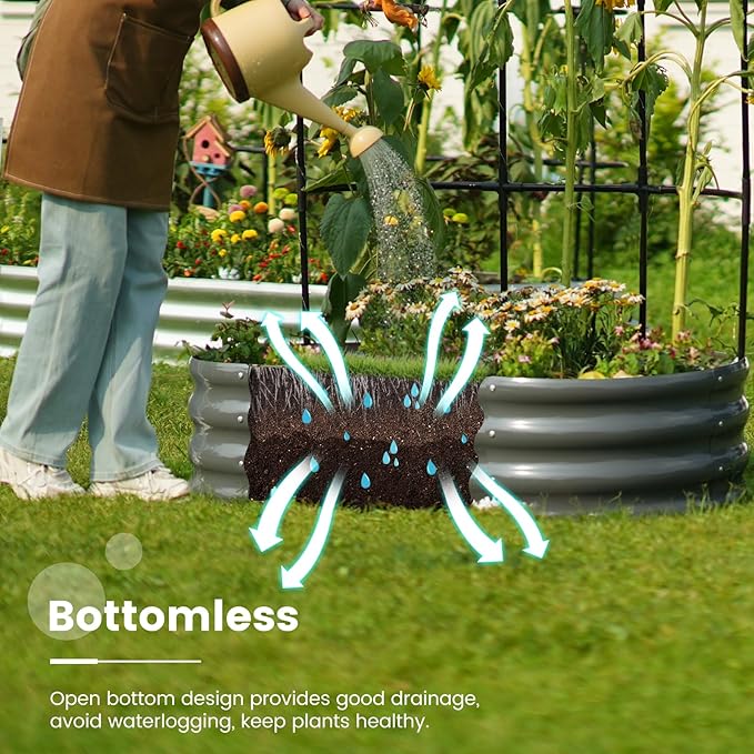 - 【Safe Rolled Edges】The edges of the metal planter raised beds are meticulously crafted with a rolled edge process, eliminating sharp edges to ensure your hands stay safe from cuts during assembly and planting, letting you safely enjoy the pleasure of gardening.