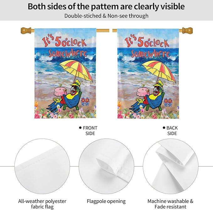 - Material: This It'S 5 O'Clock Somewhere Garden Flag Is Made Of Polyester, Ensuring Its Durability And Lightweight Design.The Designs And Words Are Double Sided Which Can Be Clearly Viewed From Both Sides.