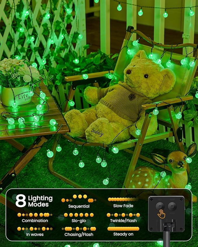 - 【Wide Application & Memory Function】The solar globe string lights with built-in memory chip save your last modes setting and no need to reset mode every day; Perfect decoration for terrace, pergola, bistro, backyard, deck, patio, garden, Christmas, holiday, wedding, party and other celebration occasions.