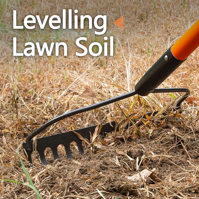 - Outstanding Durability: The metal rake head is specially coated to resist rust and corrosion even in harsh environments, the bow rake maintains its performance in wet and rainy conditions. 14 sharp metal tines penetrate the soil with ease, and the bow rake head design increases soil coverage, making every gardening task easier and more efficient.