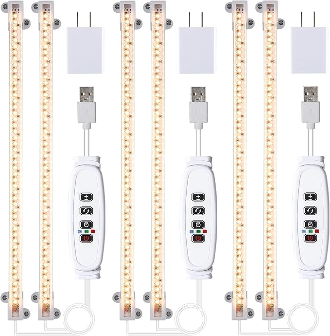 LED Grow Light Strips, Full Spectrum Plant Growing Lights for Indoor Plants 3000K, 144 LEDs Plant Lamp with 3/9/12H Timer, 10 Dimmable Levels, 3 Head 13 Inches (2 Strip 3 Pack 3000K)