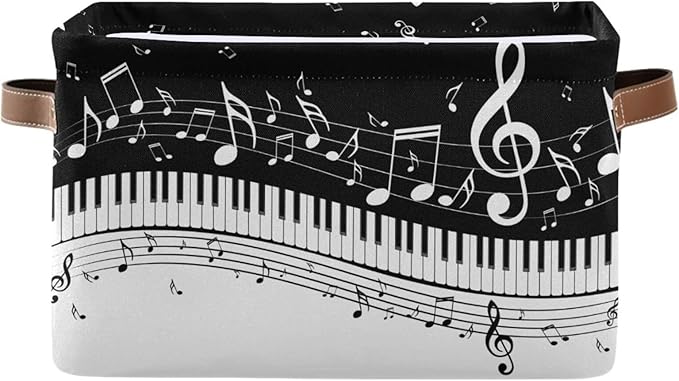 Black White Music Rectangular Storage Basket Organizer Bin Shelf Baskets For Clothes Gifts For Home Office Dorm