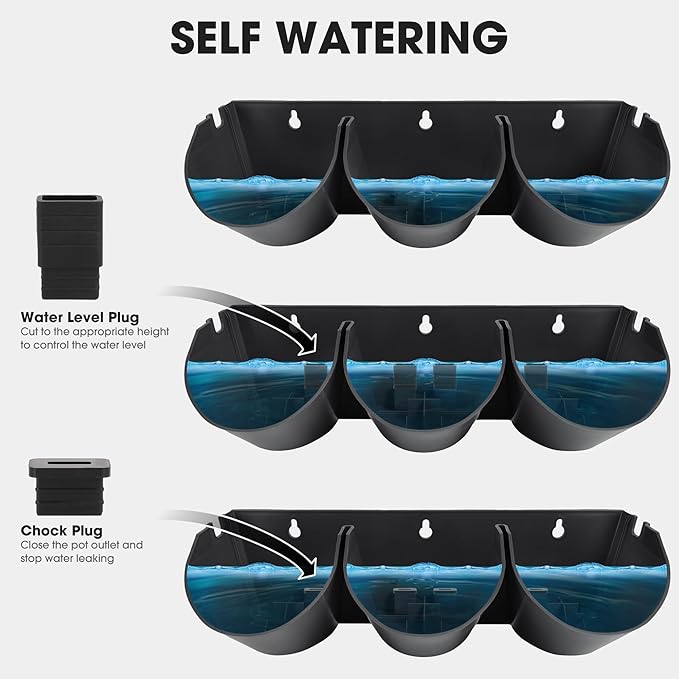 - 3 POCKET WALL MOUNTED PLANT SYSTEM: Each hanging wall planter has 3 pockets to give you room to grow different plants in a small space; The size of each pocket provides adequate room for your plants without wasting any precious space in a small apartment or a limited outdoor area; Grow a variety of herbs, perennials, succulents, houseplants or vegetables in just a single area at home; Suitable for small plant pots (diameter โค 4.3", height โค 3.5")