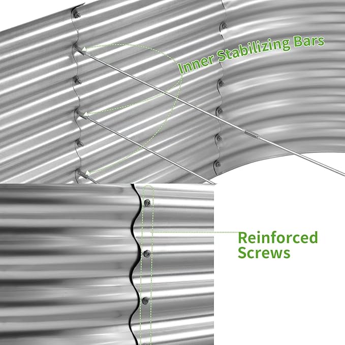 - 【Durable and Long-lasting】The garden boxes outdoor raised are made of 1.0 mm thickened galvanised sheet, durable and not easily deformed. The galvanized steel raised garden bed are coated with a powder coating that won't rust or corrode, even in heavy rain.