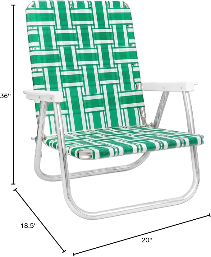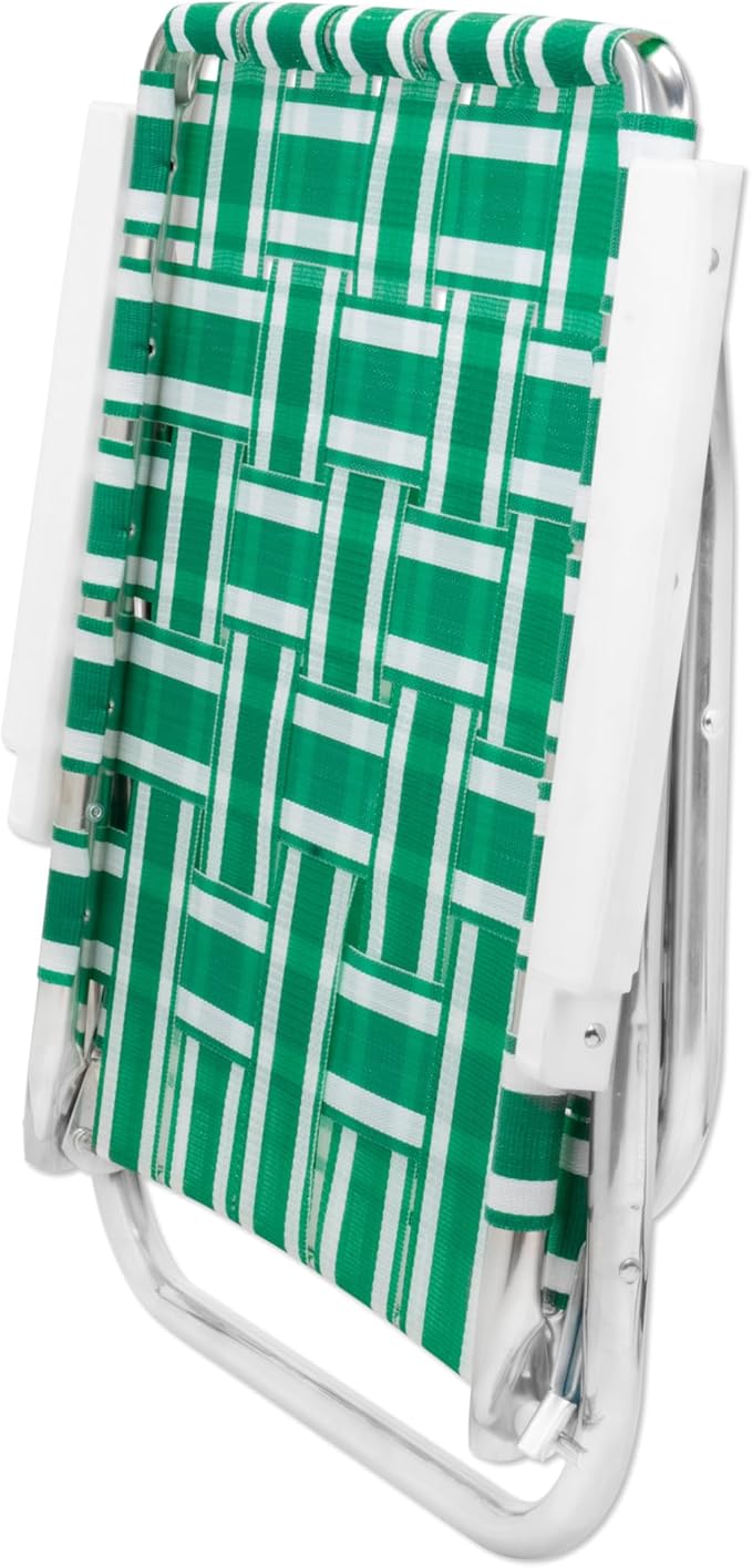 Lawn Chair USA Folding Aluminum Outdoor Patio Lawn Chair | Heavy-Duty Webbed Chairs for Camping, Sports, Beach, Yard & Tailgating | Lightweight Portable | High Back Beach Chair- Green & White Stripe