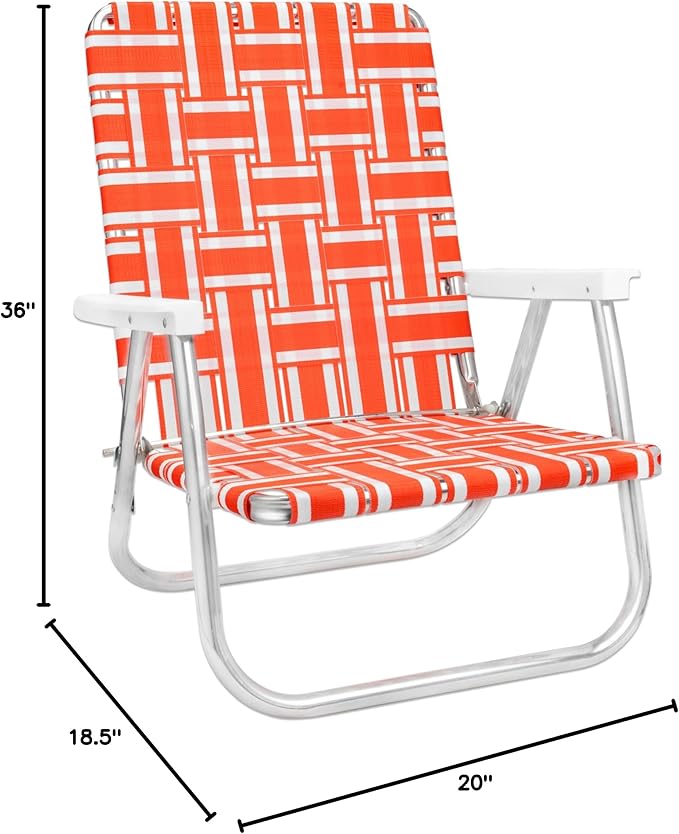 Lawn Chair USA Folding Aluminum Outdoor Patio Lawn Chair | Heavy-Duty Webbed Chairs for Camping, Sports, Beach Yard & Tailgating | Lightweight Portable | High Back Beach Chair- Orange & White Stripe