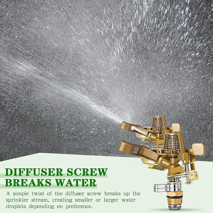 - Upgrade Impact Sprinkler: the heavy duty sprinkler can irrigate a larger area than traditional irrigation devices, saving more time and energy when you use it in your garden, lawn or farm