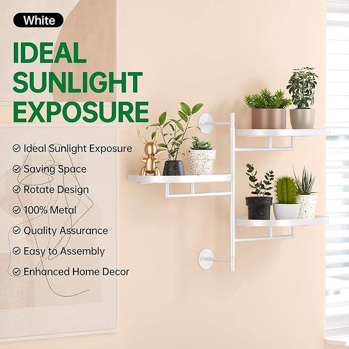 - 【Unique Window Rotating Plant Stand】:Compared to other rotating plant stands, we offer a worry-free 180°rotation, an all-metal construction, and a partially integrated design, with the main components being 1x three-tier metal rod and 3x oval mounting pieces. This minimizes the hassle of complex installation for the window plant shelf.