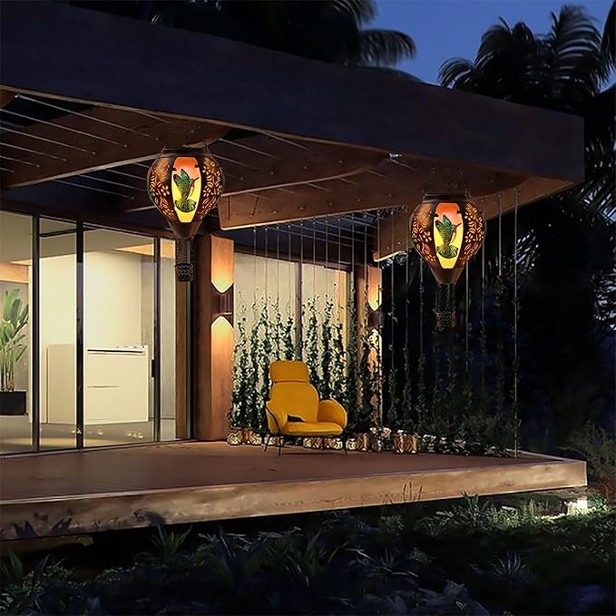Hot Air Balloon Solar Lantern Outdoor - Flame Hanging Solar Light Waterproof Lanterns for Patio Garden Yard Farmhouse Decor, Great Gift(Hummingbird 2)