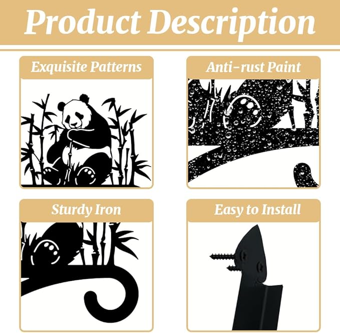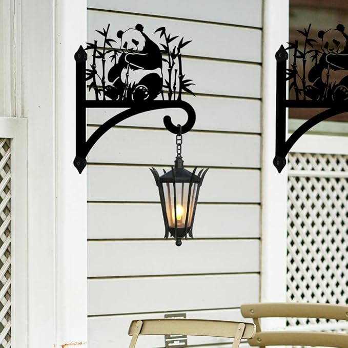 Peacoblue Iron Plant Hangers Holder for Outdoor Indoor Hanging Plants Flower Fern Pots Lantern Bird Feeder Wind Chimes, 12โx14โ Weather Resistant Metal Wall Bracket Hooks for Porch Garden House(Panda)