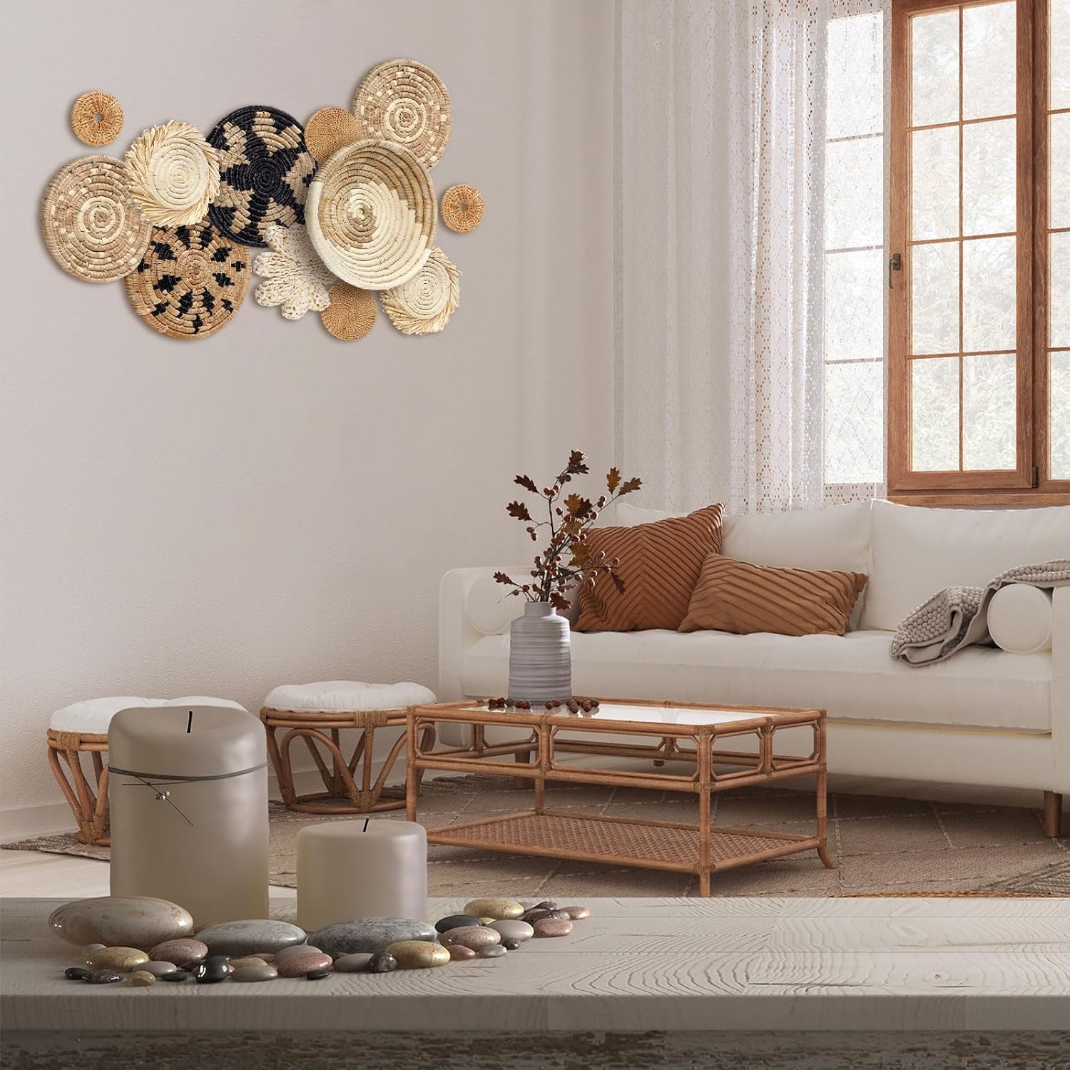 - Wide Applications: boho basket wall decor set as placemats, or as decorative baskets to store toys and accessories, the rustic basket wall art is suitable for many occasions, such as hotels, restaurants, living rooms, bedrooms, schools, stores, offices, dorms, shops,Christmas and more, they bring a comfortable, farmhouse feel to your space, bringing you an elegant and classic feeling