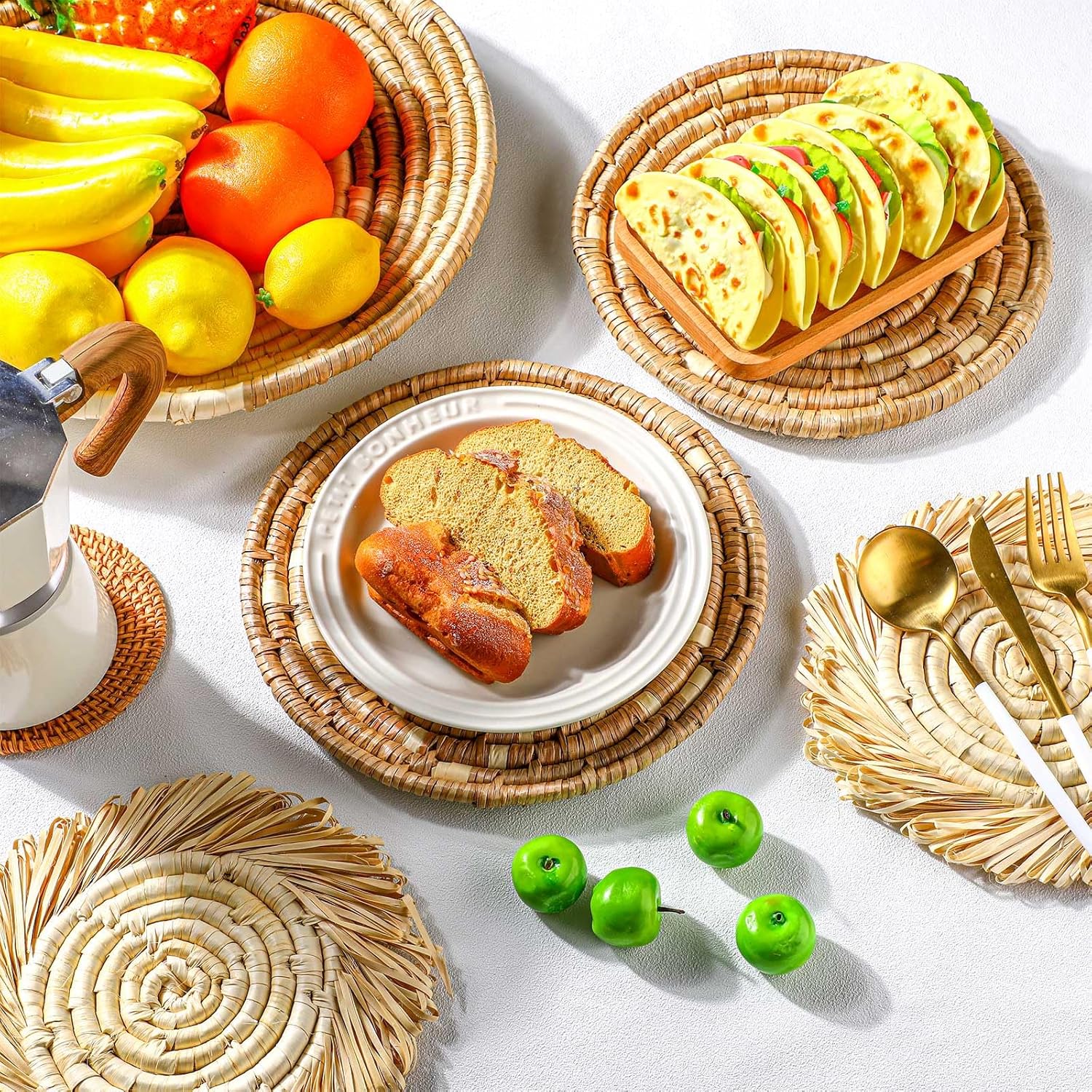 Xuhal 11 Pcs Boho Hanging Wall Basket Decor Handmade Woven Basket Wall Decorative Boho Wicker Baskets Placemats Round Farmhouse Bulrush Art for Rustic Home Decorations Christmas Gift(Rustic)