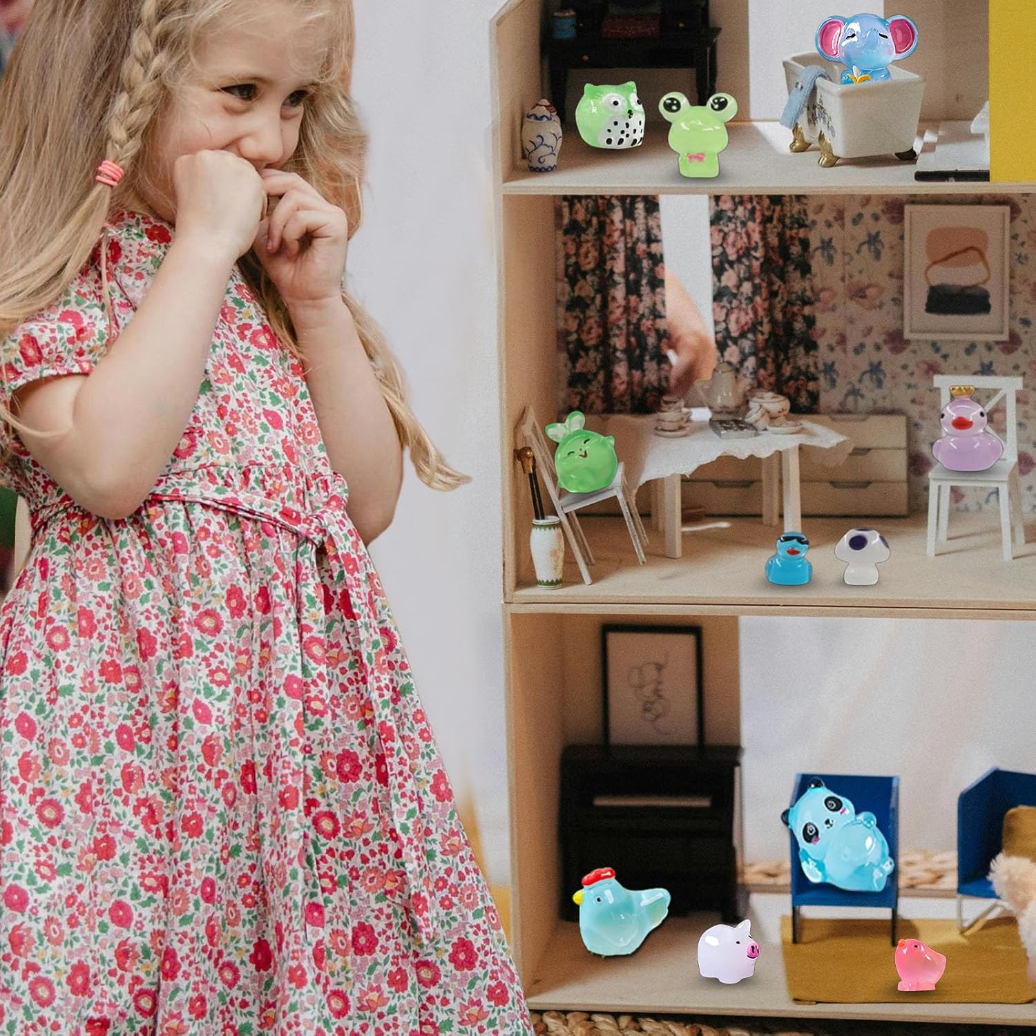- Enchanting Glow - Illuminate your garden with 100 luminous mini resin animals that emit a gentle glow in the dark, adding a magical ambiance to your fairy garden.
