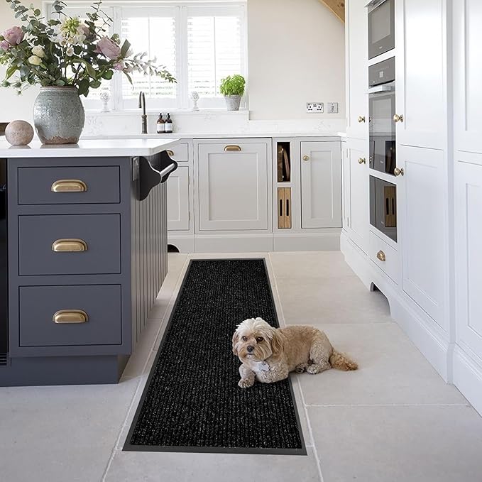 fani Heavy Duty Large Outdoor Indoor Entrance Black Doormat Waterproof Low Profile Entrance Rug Front Door Mat Patio Anti-Skid Rubber Back, 23x72 inch (Black)