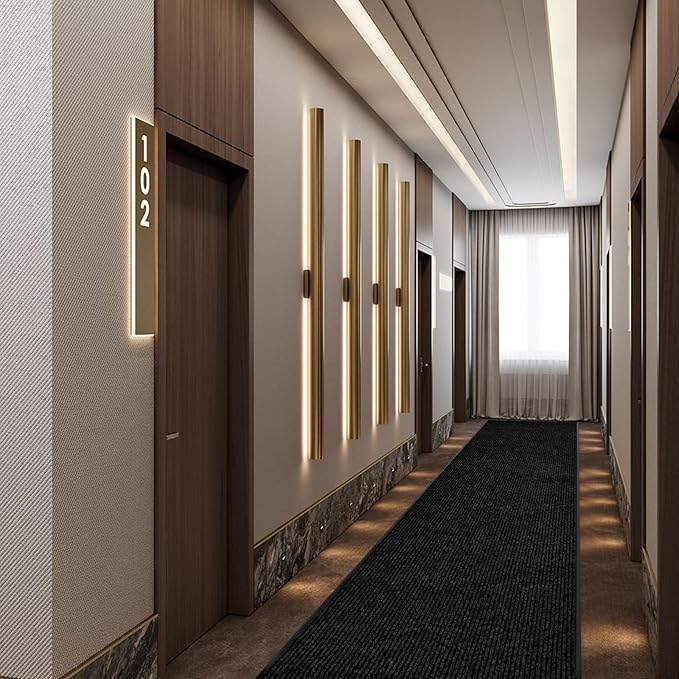 - 【High Quality Stain Resistant Runner Rug】The black door mats are made of high quality polyester and rubber. The groove design increase friction, easy to scrape sand off the soles. Effectively absorb oil without splashing. It is a great choice for trapping dirt & moisture from shoes & boots in the toughest applications; Protect your floors from snow, salt, rain and other outdoor debris.