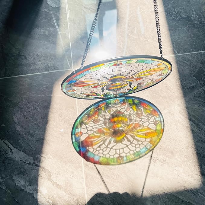 RIVEENY Bumblebee Stained Glass Window Hangings,8''Bee Suncatcher Stained Glass Window Panel Gift for Christmas Anniversary Birthday Mother's Day