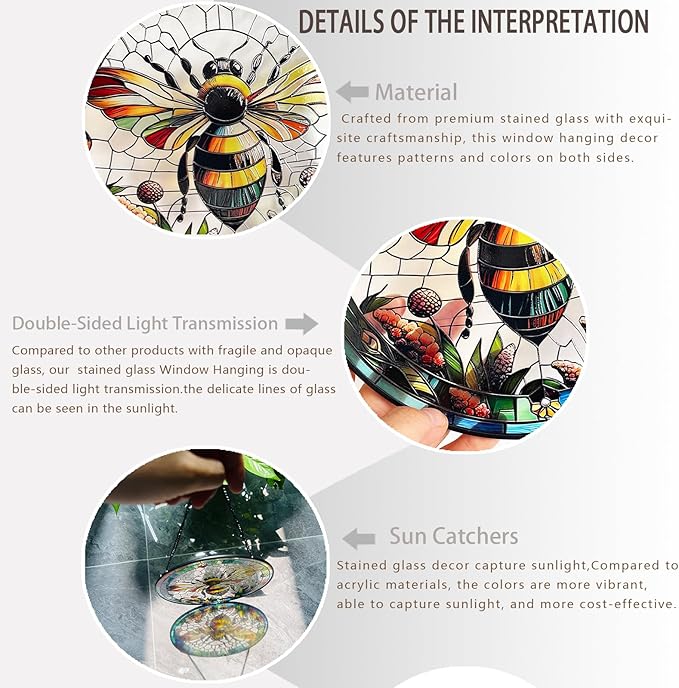 - 【Stained glass suncatcher Gifts for Love】The stained glass is timeless and never losing its luster, is a great gift choice for loved ones and friends! This stained glass window hanging contains spring and sunshine, can be sent as a birthday gift/Christmas gift/Thanksgiving Day gift/Mother's Day gift/Father's Day gift.