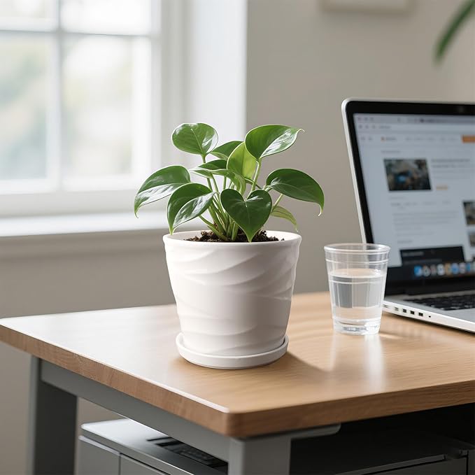 - 【Unique Pure White】 Hand-painted in gradient Pure white, with a unique texture, this flower pots for indoor plants is the best way to decorate your green space.