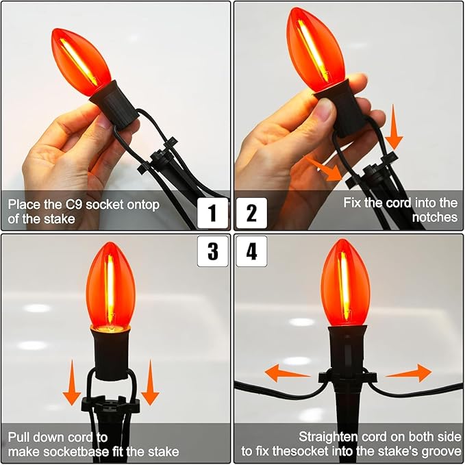 - ✨Easy to installation: C9 Outdoor christmas halloween pathway lights easy to installation, outdoor Halloween pathway lights plug in and ready to use, Orange purple halloween pathway marker stakes lights outdoor perfer for pathways, walkways, driveways garden, patio, balcony, porch, hallway, fence, creating an illuminated path and creepy Halloween holiday, perfect for parties, trick-or-treaters, and Halloween enthusiasts alike!