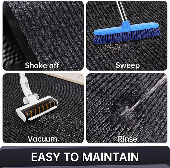- EASY TO CLEAN: Simply shake, sweep, or vacuum the entrance floor mats to remove dust and debris. For a deeper clean, rinse with a hose and air dryโfront door mats will quickly returns to its original condition.