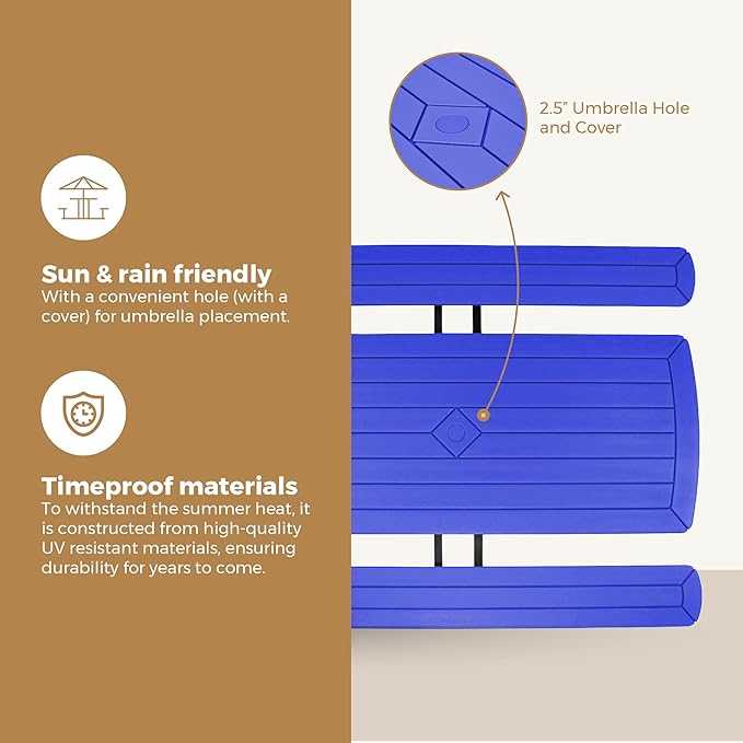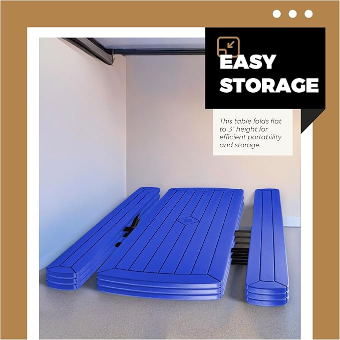 - Durable, Heat-Resistant Construction: Made with high-quality blow-molded plastic, this table is built to withstand the heat, ensuring long-lasting durability for outdoor use season after season.